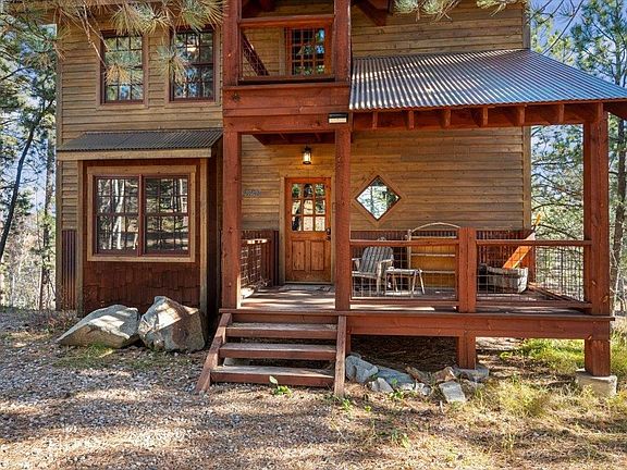 For more information, please contact listing agents Heath Gran 605-209-2052 or Scot Munro 605-641-6482 with Great Peaks Realty. Impressive 4-bedroom cabin at Gilded Mountain! Rustic character inside and out! Views galore from the covered front porch and back deck, upper balconies or the hot tub nestled in the pines. Upper-level features two bedrooms, full bath and an open loft lounging area. Main level offers an open layout to the kitchen, living and dining room boasting gorgeous wood floors, center island with bar seating, large windows and gas log fireplace to bring all the relaxation! The walkout basement offers two additional bedrooms, full bath and spacious family room. Enjoy the Gilded Mountain community offering a private clubhouse with outdoor pool, the perfect location for your Black Hills getaway or vacation rental investment!