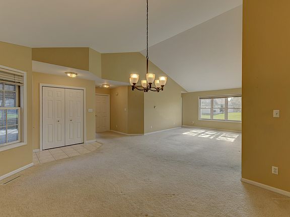 Welcome to easy living in the coveted White Oak Estates of Highland! This beautifully maintained single-family ranch home offers 1,939 square feet of thoughtfully designed living space, all on one level - no stairs! Set on a 1/4-acre lot, the low-maintenance lifestyle is made even easier with a low monthly HOA that covers lawn care and snow removal. Inside, you'll find 2 spacious bedrooms, 2 full bathrooms, and a versatile den that can serve as a third bedroom or home office. The open-concept living and dining area features a vaulted ceiling, creating a bright and airy space ideal for entertaining. The eat-in kitchen flows seamlessly into a sunny four-season sunroom, which opens to a private patio, perfect for relaxing or enjoying morning coffee. The primary suite includes a private ensuite bathroom and a large walk-in closet. A separate laundry room leads to the attached 2-car garage, and all appliances stay with the home for your convenience. Ideally located near shopping, dining, medical facilities, and with easy access for commuters, this home offers the perfect blend of comfort, convenience, and community. Don't miss this opportunity to enjoy low-maintenance living in one of Highland's most desirable neighborhoods!