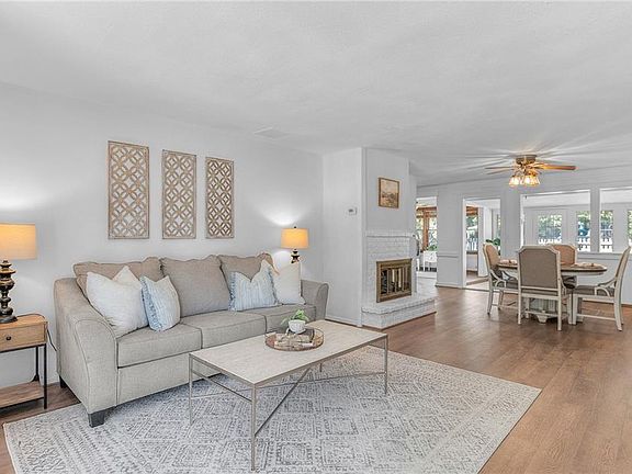 Bright sunroomOpen-concept floor planInviting layoutOverlooking the backyard