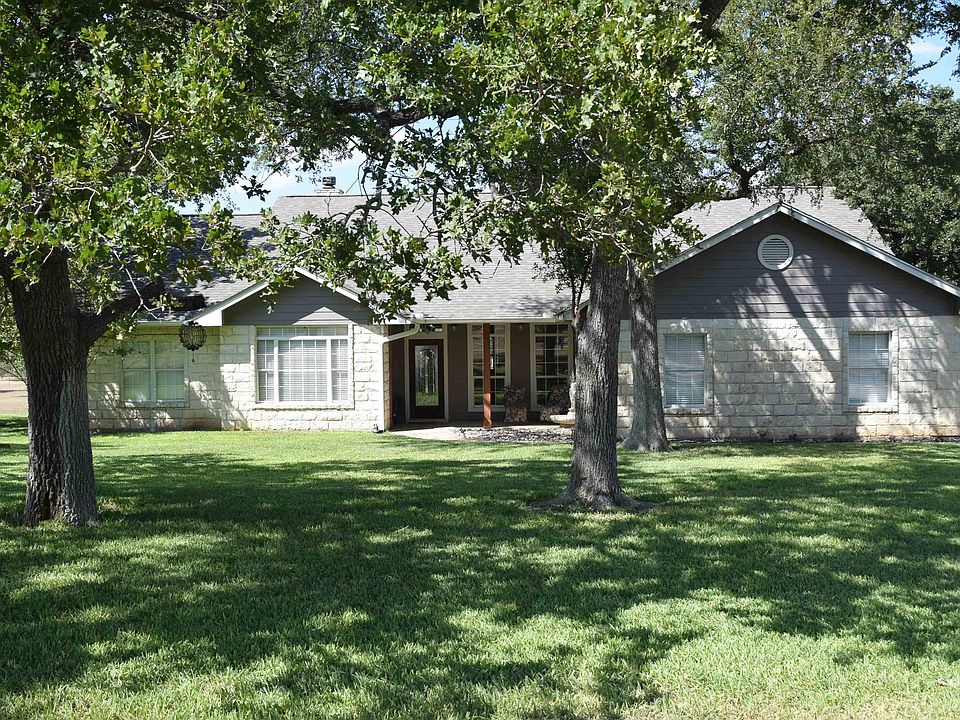 Great Location, 5 minutes to Baylor Scott and White, easy drive to Marble Falls, Burnet, Llano, Kingsland, Johnson City, Fredericksburg, Austin, San Antonio. Just south of the 71/281 intersection. Horses Ok. 5 acres, 40x50 insulated shop with three overhead doors, two walk through doors. 9 ft rear lean to, attached covered RV parking with 50 amp elec. RV pad with 50 amp power. Large Game room in shop with 3/4 bath, man cave or for the kids. Stairs and flooring above gameroom for storage. 3/2.5, dining room, breakfast room, office, family room with wood burning fireplace. Kitchen with granite and new stainless appliances, custom cabinets by Price of Marble Falls. Landry room off three car garage. New roof shingles 8/20, New inside ac in 4/10, new outside unit in 12/22. Outside paint and new gutters in 2020. 35 gpm well monitored by Central Texas Water Conservation district read once a month. Well house with water softner. Her and his walk in closets and her and his sinks in master bath. Next door to 80 acre longhorn ranch.