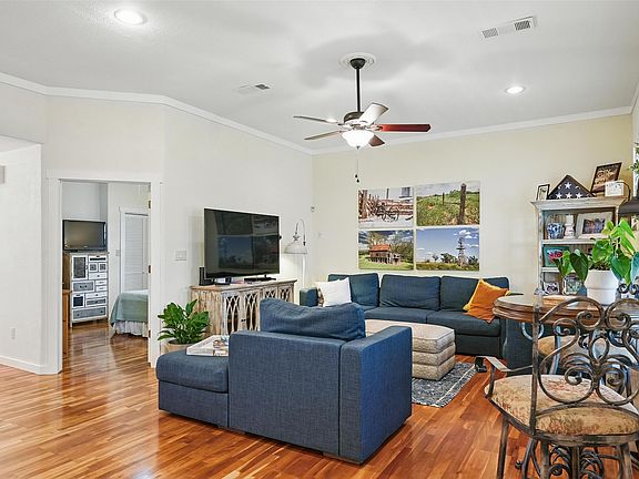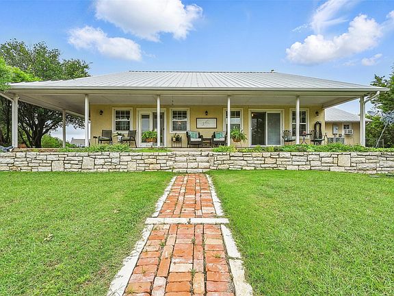 Hidden hilltop gem in Bentwater Subdivision. Follow the private drive up to this stunning retreat offering breathtaking views and privacy. A circular driveway welcomes you to a detached 32x24 garage complete with electric, water, sewer, and an RV pad with hookups, perfect for guests or extra storage. An oversized attached garage easily accommodates 2 full-sized trucks. Inside, enjoy a spacious kitchen with a large center island, abundant storage, double ovens, stainless steel appliances, and a gas line ready for conversion to a gas cooktop. The home features beautiful, engineered hardwood floors, plantation shutters, and a unique circular layout that maximizes the incredible lake views from the primary suite, secondary bedrooms, kitchen, and living area. This home is wheelchair accessible. The primary bath includes heated floors for year around comfort. This home conveys with an assigned boat slip C-22 at the Marina, where you will also find a clubhouse, picnic area & sport court for homeowners use. A truly rare find, peaceful and practical. It's an easy hop to Downtown Granbury for great dining and live entertainment venues and less than 45 minutes to the DFW Metroplex. Its on the Fort Worth side of Granbury.