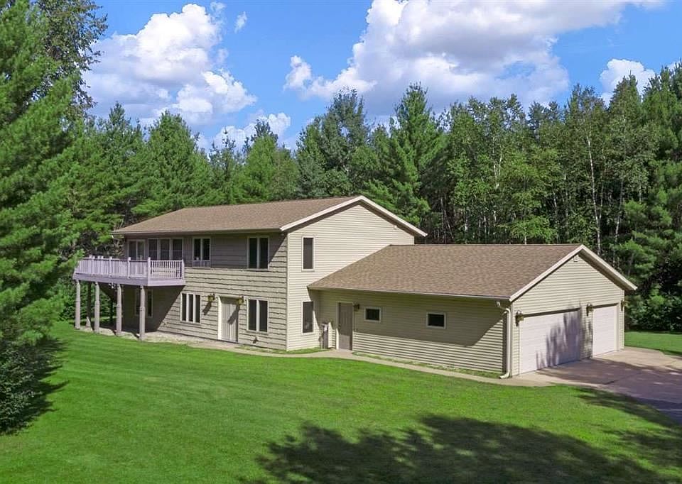 Just minutes from Sentry World Golf Course this private 2.2 private and wooded lot is home to a well built, well maintained 3 bedroom 3.5 bath home. This one is a must see. There are 2 master suites upstairs as well as a family room with gas log fireplace, wet bar area, sun room, and laundry. Main floor features beautiful open kitchen with large center island, living room and another large master suite. 3 car garage is insulated and finished , utility room and store room. Home has amazing privacy and can't be seen from the street. There is in floor hydronic heat on the main floor as there is no basement. Located in Eagle Point Subdivision you will have access to lake and there is a yearly $100.00 lake association fee. This home is a must see! Handicap accessible.