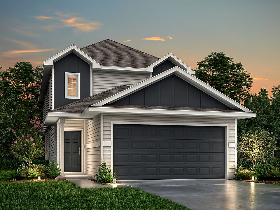 The Augusta Plan is a two story home with 4 bedrooms, primary bedroom down, large gameroom up, and utility room up. Optional box window in dining area, bay window in primary bedroom, primary bath options, and covered patio available.nbsp;