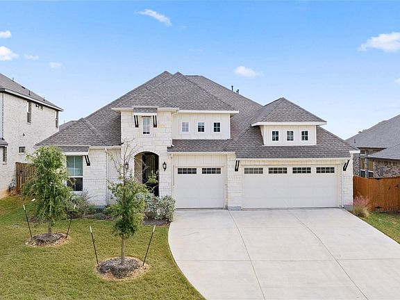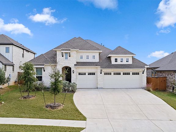 Experience modern Texas living in this beautifully upgraded one-story Coventry home, offering 4 bedrooms, 3 full baths, and a private office across 2,820 sq. ft. of open, sun-filled space. Step inside to find elegant wood-look flooring, wide sliding glass doors, and a seamless flow between the kitchen, dining, and living areas. The gourmet kitchen features a large quartz island, ceiling-height cabinetry, stainless vent hood, and a hidden working kitchen with a walk-in pantry — perfect for keeping the main space clean and guest-ready. The bay-window dining area bathes in natural light, while the spacious living room invites gatherings and everyday comfort. The primary suite offers a tranquil retreat with a bowed window, a spa-style bathroom with dual vanities, marble-look tile to the ceiling, and a frameless walk-in shower. Step outside to a covered patio prepped for an outdoor kitchen, ideal for weekend barbecues or quiet evening dinners under the Texas sky. Additional highlights include upgraded laminate flooring in all bedrooms, full interior repaint, a complete water softener and filtration system, and a laundry room pre-plumbed for a sink or pet wash. With over $130,000 in design and post-purchase upgrades, this home blends elegance, functionality, and comfort — offering the perfect balance of style and livability in Leander’s desirable Palmera Ridge community.