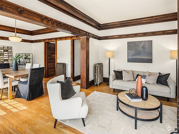 A Craftsman home in the heart of Wallingford with a Walkscore of 96! What more could you ask for? How about classic fir floors, wood wrapped windows, wood burning fireplace, solid wood doors, 4 bedrooms in the main house & and a 1 bedroom apartment with a separate entrance! Two large bedrooms on the main level with a full bath, 2 more upstairs plus a landing area, perfect for an office or playroom. The kitchen has ample cabinet space, a gas stove & side entrance to the backyard. The 1 bedroom apartment is fully equipped with a full kitchen, washer/dryer & 3/4 bath. The south facing deck above the 1 car attached garage adds summer entertaining space.
