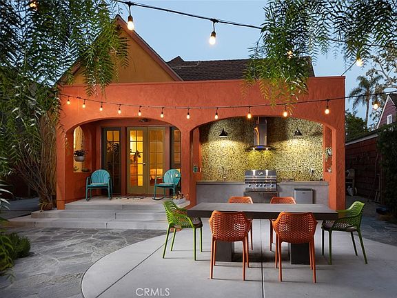 Design, style, and charm exude from this incredible Historic Tudor Revival with the Mills Act! In the heart of Floral Park, the archways, high pitched roof, warm earth-toned color scheme, and the amazing garden with specimen plantings lend the house a magical quality. You will know you are home the moment you enter through the inviting, arched, wood front door and find a magnificent living room featuring a uniquely high tray ceiling, a large, arched picture window, multiple mahogany-framed and mullioned casement windows, and an impressive brick fireplace with a stunning wood surround and mantle as a focal point. The living room opens through an archway to the gracious dining room featuring a wall of casement windows and ample space for entertaining. The exquisite hardwood floors have been recently refinished and sparkle. The kitchen is a vintage gem complete with beautiful tile counters, wood cabinetry with original design flourish at the base, O’Keefe and Merritt stove, dishwasher, garden window, matching built-in buffet with glass door cabinets for extra storage, and an eating area. The main house has 3 spacious bedrooms, a hallway with 4 closets & lots of storage, and 2 baths. The primary bedroom is complete with walk-in closet, French doors to the stunning backyard, and a remodeled private bath featuring dual sinks and a beautifully tiled, large shower. In addition to the 1,788 square foot main house, there is a separate 741 square foot office/pool house featuring a high, open-beamed ceiling, 2 brick fireplaces, kitchen area, 3/4 bath and a wall of French doors that open to the enchanting backyard. Designed by renowned Jim Shepstone Landscaping and full of charming vignettes of pathways and greenery while utilizing low water planning, this yard has a gorgeous outdoor kitchen and BBQ area complete with grill, sink, fridge, and tiled backsplash, a cement table for entertaining, a firepit with gathering area, custom lighting, Valencia orange and Eureka lemon bearing plentiful fruit, and even a garden area with blackberries and a potting shed! The house has mostly copper plumbing, approximately 8 year old roof, and upgrades to the electrical with 9 solar panels that seller will pay off! Historic Floral Park has many exciting events such as their Home & Garden Tour. Centrally located and close to the 5, 22, and 57 freeways, it is just minutes to the Orange County School of the Arts, Main Place Mall, as well as both Downtown Santa Ana and Downtown Orange.
