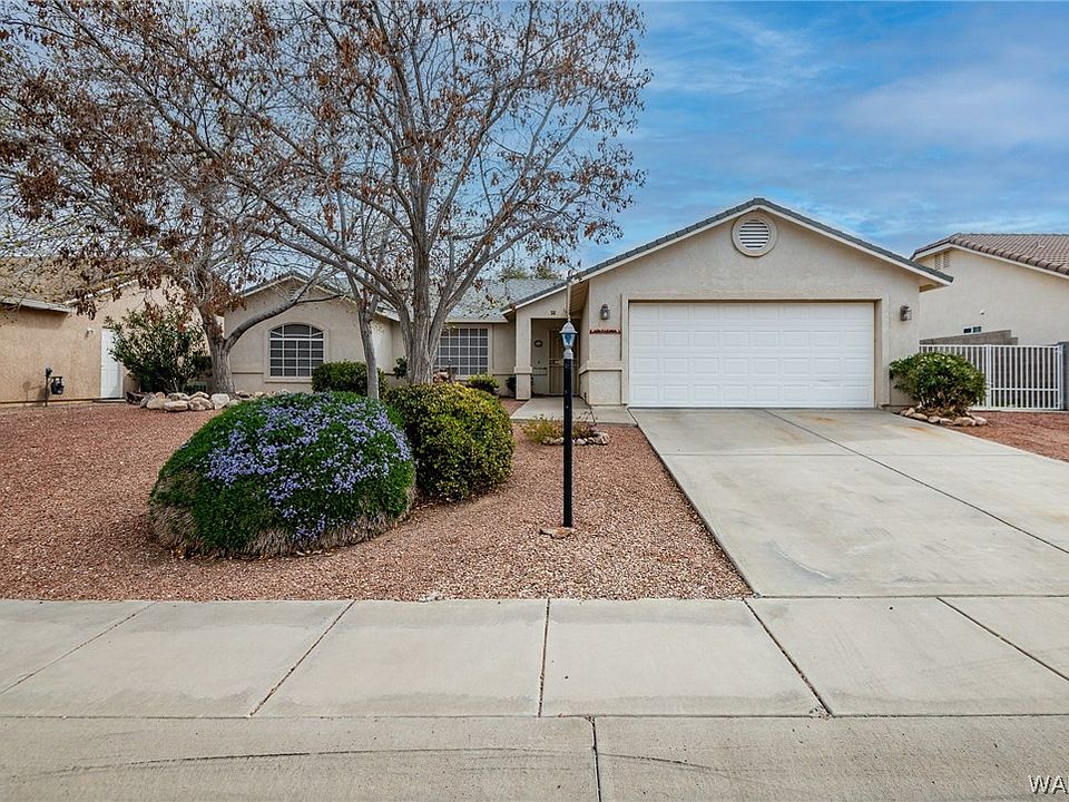 PRISTINE SINGLE OWNER 3/2/2 IN GREAT LOCATION: Welcome to the quiet subdivision of Ridgeview Ranch. Situated off of Hualapai Mountain Road, this property is conveniently close to amenities, schools, & parks. The .17 acre lot has western frontage, with a 1,466 sf 3 bedroom, 2 bathroom, 2 car garage home built in 2001 resting at its center. Inside, vaulted ceilings & plantation shutters accent the main living area. The informal dining has back patio access through an upgraded sliding glass door (5 yr), & the semi-open kitchen rests adjacent to it at the back of the home. A pantry, Whirlpool appliances (gas stove - 1 yr, above-mount microwave - 1 yr, dishwasher - 2 yr), updated lighting fixture, sink window, & ample counter space with a breakfast bar make this a perfect place for meals & family gatherings. Both bathrooms were updated with 17.5" toilets in 2021. The split floorpan affords maximum privacy for the master bedroom that lies at the SE side of the home. It's complete with its own ensuite, housing a large walk-in closet & walk-in shower. Other interior features include updated ceiling fans throughout, carpeted bedrooms, & accent pot shelving. The attached garage has a fully finished interior & built-in shelving and cabinetry to accommodate storage & projects. It also features an insulated garage door & automatic opener. Outside, the front yard hosts mature trees & easy care rock landscaping. Entering the backyard, a 10' RV gate provides paved access to RV parking, complete with 30 amp service & cleanup, & a 2022 HVAC services the home. The block wall has been extended to 6' for added privacy, & an 8' x 12' storage shed segues from the southern yard into the western portion of the backyard. Here, a raised pavered fire-pit area overlooks the idyllic landscaping. Apple, fig, Santa Rosa plumb, flowing plumbs, eucalyptus, & sumac trees create privacy & natural ambiance. The finished covered back patio hosts ceiling fans & retractable sunshades, helping to optimize the outdoor living & entertaining experience. An automatic watering system makes maintaining the foliage a breeze. Window awnings help keep interior temperatures cooler, & the space is rounded out by a low-e astro turf & an extended uncovered concrete patio. This home is a must see. Call your Realtor today for your personal property tour.