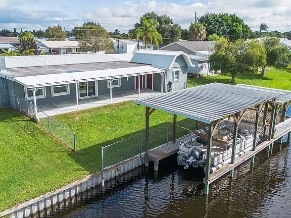 Taylor Creek Isles -Lake Access Well maintained 3-bedroom, 2-bath CBS home offering 1,672 sq. ft. of living area and a total of 2,882 sq. ft. under roof. This spacious home features a 34x12 family room overlooking the water, perfect for entertaining or relaxing with a view. Enjoy cozy evenings by the fireplace and the convenience of direct lake access from your own private dock with lift and pontoon boat included. Plenty of room for all your toys with covered parking for your boat, carport, and a concrete block shed/workshop. Located in one of Okeechobee's most desirable waterfront communities with quick access to Lake Okeechobee. CBS construction, metal roof, accordion hurricane shutters and a well-maintained interior and exterior make this home truly move-in ready. measurements are approximate.