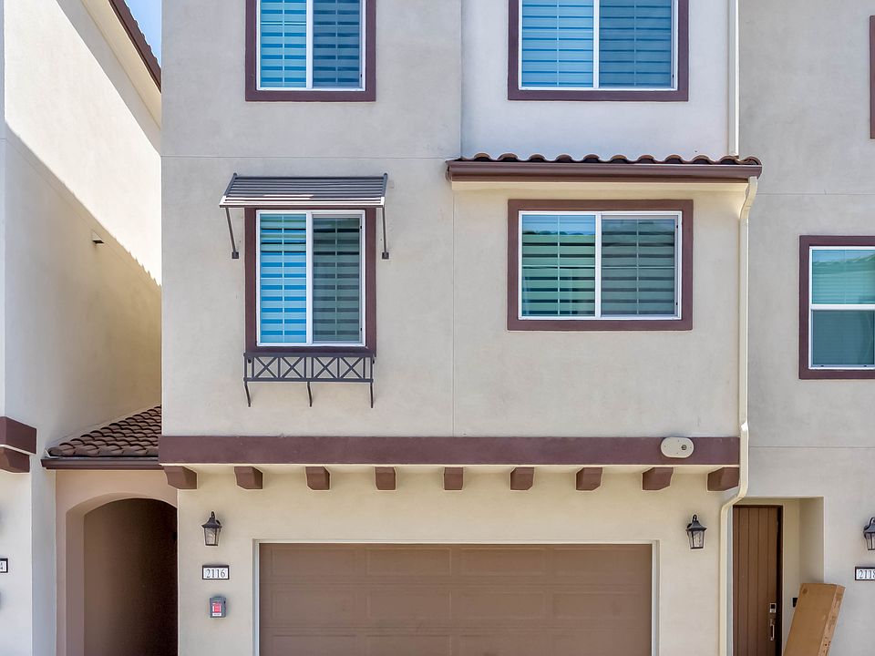 New! Discover this beautiful corner unit, 3-bedroom+Den, 2.5-bath townhome, offering approx. 1,600 sqft of modern living on a green view premium lot. Located within the highly sought-after Gateway Towns at Gateway, this residence is part of a vibrant neighborhood in Pomona, CA. The lower level of this three-story townhome features a versatile flex room, perfect for a home office or game room, accessible from either the porch or the attached two-car garage. Garage shows new Tankless water heater and full Paid Solar power for big saving. On the main floor, you'll find an open-concept layout anchored by a well-equipped kitchen with a large center island, stainless-steel appliances, stylish Shaker-style cabinets and custom double shade on the dual pane windows. The dining area flows into a spacious great room with direct access to a private balcony, perfect for entertaining or relaxing. Upstairs, the secluded owner's suite offers a private retreat with a spacious walk-in closet and a luxurious bath featuring dual vanities. Two additional bedrooms, a full hall bath, and a convenient laundry room complete the upper level. As part of the Gateway Towns community, residents enjoy access to fantastic amenities, including a swimming pool and playgrounds. GREAT LOCATION FOR COMMUTING! Situated close to major freeways, including the 72, 60, 57, and 10, this home offers easy access to Phillips Ranch, Chino Hills, Chino, and Ontario, making your daily commute a breeze. Located in Southern California within Los Angeles County, Pomona offers a dynamic lifestyle with nearby attractions like the Fairplex venue home to the Pomona Raceway and the LA County Fair. You'll also be close to California State Polytechnic University, the historic Pomona Mall, and a variety of outdoor activities such as boating, fishing, hiking, and biking. This home provides the perfect blend of modern living, convenience, and access to the best that Southern California has to offer. 12-24 or more, long-term lease prefers, owner pays HOA, Tenants pays all utilities. there will be very little electricity cost due to the paid off solar power. No smoking, no pets. Renter's Insurance required. 2 car attached garage.