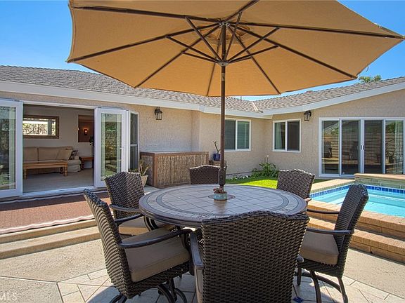 The luxurious primary suite features vaulted ceilings, a cozy fireplace, views of the rear entertaining area, and a spa-inspired en-suite bathroom. The home also brings two additional bedrooms —one with a walk-in closet and its own private full bath. Walls of glass in the living area invites you outside to the private backyard, where you'll discover an in-ground spa and ample space for gatherings or al fresco dining. Additional features include an interior laundry area, oversized garage, skylights, ceiling fans, and a raised garden bed. Located close to award-winning schools, renowned beaches, Edison Park, and the vibrant downtown Huntington Beach scene, this home offers a rare opportunity to enjoy coastal living at its finest.