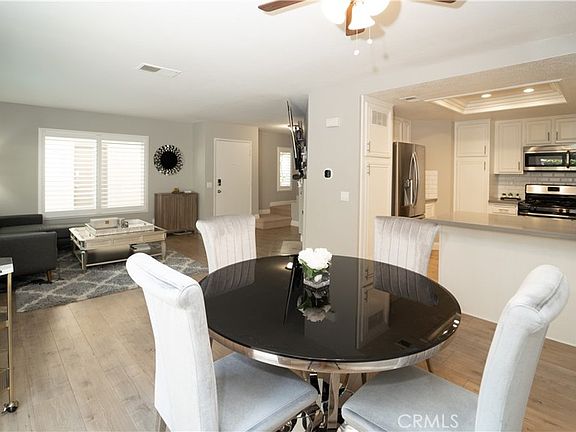 Highly desirable end unit in the beautifully maintained Vista Del Flores community, with no one above or below. Stunning remodeled two-story home with dual Master Bedrooms upstairs. Kitchen remodeled with grey quartz countertops, newly finished cabinet, new bright white subway tile backsplash, new kitchen faucet and sink, and all new stainless steel appliances. Living room fireplace for cozy nights. Dining area off kitchen. New distressed flooring on the first level and new low pile carpet upstairs. Half bath downstairs with matching grey quartz countertops. Both Master Bedrooms upstairs are generously sized and offer full bathrooms with grey quartz counters, new faucets, new light fixtures, and mirrored closet doors. Additional upgrades include plantation shutters installed throughout the home, a new garage door, a Tesla gen two wall connector with a new sub-panel, and an upgraded 100 amp main breaker. This unit has upgraded PEX pipe plumbing and a new roof done this year (2022). The open floor plan of the home is excellent for entertaining. The patio off the dining area provides perfect space for summer bbqs. Enjoy local shopping and entertainment nearby. Short drive to the Great Park, Irvine Spectrum, and several highly ranked schools!