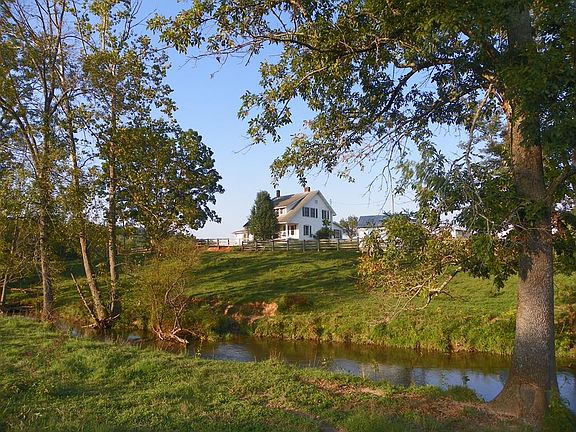 Here's a wonderful farm with 52+/- acres of land with a rippling creek rolling in front of the house. The original house was built in 1924, some time later an addition was added. The 3 BR 2 Bath home includes a living room with stone fireplace, a dining room - both with original hardwood floors, wood trim and a set of pocket doors; a large kitchen, and spacious den with wood burning stove, laundry and sun room. A 3 car attached garage, front porch for enjoying the views and a back patio; several storage buildings and some barns are also on the property. The farm land and barns are currently under lease. Internet availability is unknown. Property is 'Sold AS IS" Buyer may have inspections for their own satisfaction TAX MAPS are incorrect Can be purchase as a 2 family farm - see mls # 70874