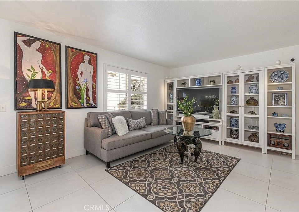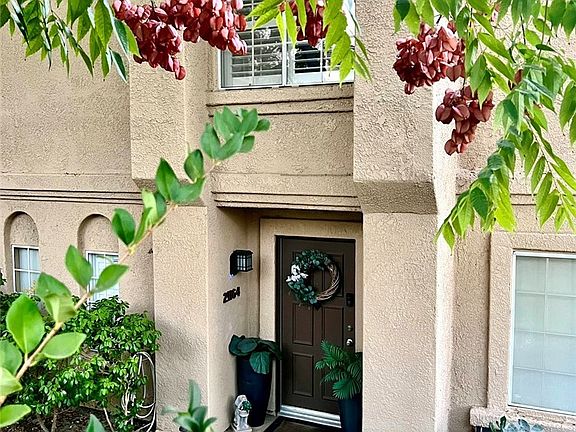 Welcome to this beautifully maintained two-story condominium in Lake Forest, featuring a private entrance with no front-facing neighbors. This home boasts a bright, open layout and tasteful upgrades throughout. These include a stylish, modern kitchen with elegant cabinetry, newer stainless steel appliances, and a spacious walk-in pantry. The living room showcases a custom-built wall unit designed to accommodate entertainment pieces, books, and displays, with three glass-enclosed bookcases adding sophistication. Coordinated hardware and cabinetry create a seamless and elegant look throughout this home. Gorgeous 2x2-tile flooring flows throughout the entire property, enhancing its contemporary feel. Fabulous crisp white plantation shutters throughout bring charm and brightness to every room, while mirrored closet doors add to the spaciousness. All 3 bathrooms feature elegant fixtures and finishes, adding a touch of luxury. A sliding glass door opens to a spacious patio, where a unique two-color pinwheel ceramic tile design adds visual interest, perfect for outdoor gatherings. A beautiful, modern full-sized washer and dryer are included for added convenience. The attached two-car garage is equipped with ample storage space, including a full wall of sleek white cabinets and an ultra-quiet, newer garage door opener which can be WiFi-controlled and also has a touch panel on the outside for keyless entry. Additional recent upgrades include a re-roofing and re-piping completed about a year ago, offering peace of mind. This home is also close to the community pool, spa, tot lot, and just a few steps away from Peachwood Park and a short drive to the 86-acre Lake Forest Sports Park and Recreation Center, one of the largest sports parks in Orange County. Vista Del Flores is situated in a picturesque residential neighborhood close to the Toll Road for easy commuting, parks, shopping, and top-rated schools, this home offers the perfect blend of comfort, convenience, and style in a prime location.