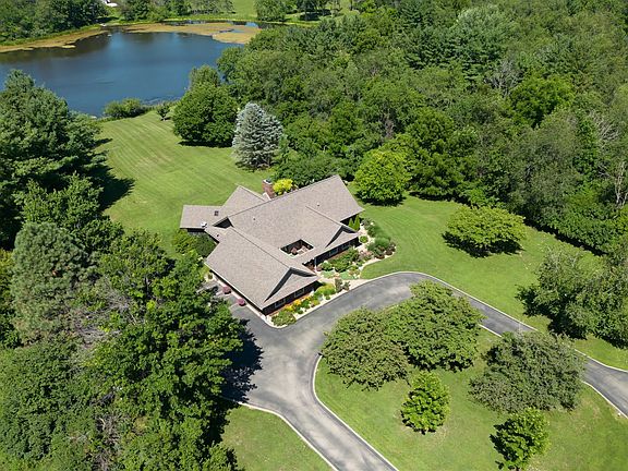 One-of-a-kind property in Downs and Tri-Valley School District. Wake up every morning feeling like you are on vacation! Home sits high on a hill on 5.15 acres with a gorgeous view of the valley and an 8-acre private lake below. Timber-lined property with walking paths that are well kept and great for adventures with friends & family. The front of the house is inviting with great curb appeal. The home has been completely updated since 2014. The gourmet kitchen is an entertainer's dream that opens up to a vaulted living room with a beamed ceiling. The three seasons room off the kitchen gives picturesque views of the valley to enjoy Spring through Fall. The master bedroom is a getaway itself with its own fireplace and double slider doors that open up to the deck. The deck is a great place to enjoy a cup of coffee in the morning or a glass of wine at night. A downstairs family room is equipped with a movie theater and a walk-out basement with its own patio. This owner thought of it all when they remodeled it, they took it down to the framing to create a truly magnificent home. Don't miss out on this one-of-a-kind listing!