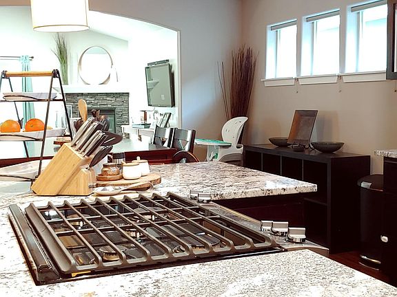 The Ponderosa is elegance at an affordable price! This beautiful, one level, MonteVista Home has a refined and stylish exterior featuring a covered front porch and gables. As you enter the Ponderosa, richly textured laminate hardwood floors usher you inadding to the charm, appeal, and value of your new home. Our opulent floors come in many varieties of grain, shade, and design to meet your individual style and taste. On your way to the spacious kitchen and great room, you will pass by the handy coat closet and utility room. The large kitchen features an L-shaped kitchen island and custom cabinets with plenty of room for your pots, pans, dishes, glassware, and valuable china or heirlooms. The designer counters on the kitchen island boast plenty of space for prepping your delicious holiday meals! As you pass through the dining room into the great room area, the high vaulted ceilings and corner fireplace create a warm and friendly environment for you and your guests to enjoy. Here you will create many fond memories with friends and family as you play games, watch movies, entertain and enjoy each other's company. The entire kitchen/dining room/great room areas are all open and interconnected with large windows that provide views to the outside while letting in lots of natural light.