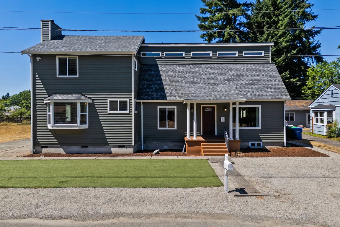 Easy-care front turf lawnTankless water heaterNew deckDouble-pillar covered front porchNew roof