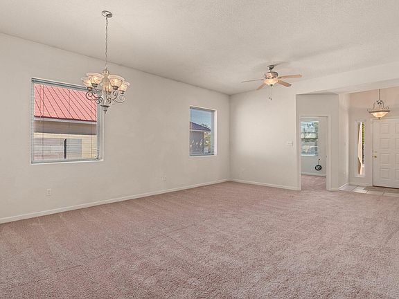 Wonderful Artistic single story home located in the Los Milagros community of Rio Rancho. Home features 2,041sf with 4 bedrooms, 2 full bathrooms, 2 living areas and a 3 car garage. New Carpet throughout! Spaciously designed kitchen with upgraded cabinetry, ample countertop space, stainless steel gas range. microwave, dishwasher, breakfast bar and nook! Main living area right off of the kitchen, prefect when entertaining. Great owners suite with private bath. Bath hosts dual sinks, an over sized vanity, large soaking tub, walk-in shower and closet. Three additional guest rooms gives space for everyone. Nice backyard, fully walled and landscaped, with a covered patio! Close to schools, shopping and restaurants.