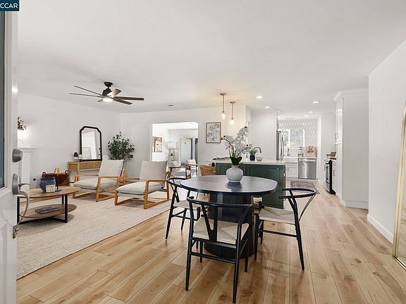 Welcome to this charming single-level home in the desirable Holbrook Heights community. The front porch sets the tone as you enter the home, offering a perfect spot to relax and enjoy the neighborhood. Step inside to fresh interior paint and a spacious, open-concept layout filled with lots of natural light. Kitchen features stainless steel appliances, a large island with an additional sink, a wine fridge, and abundant storage. The kitchen opens seamlessly to the main living area with a cozy fireplace. Additional living space offers flexibility to be used as a formal dining room, home office, or family room. The primary bedroom includes a private en-suite bathroom and its own glass slider leading directly to the backyard, offering a peaceful retreat. Two spacious guest bedrooms feature beautiful hardwood floors with a hall bathroom for guests to enjoy. Laundry room with an included washer and dryer. Dual-pane windows, central heating and air, and a unique drive-through garage with an additional rear garage door for easy backyard access. Enjoy the private backyard with a pergola-covered patio, a garden area, and a large storage shed. Close proximity to community pool, park, Pixieland, downtown Concord, sports fields, and BART. Don’t miss this amazing home!