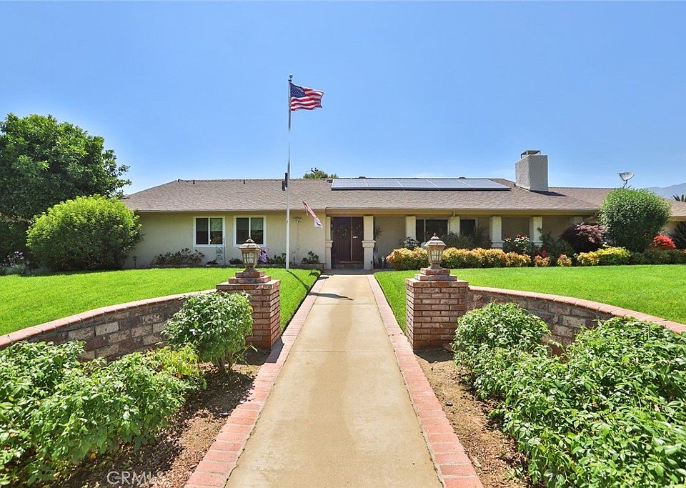 WOW! THIS IS THE HOME That Has Everything You Have Been Waiting For! Looking For A Ranch Style Single Story Turn-Key Home North Of The 210 Freeway? How About A Home With A Fully Functional ADU/Guest House? What About A Home With A 5+ Car Garage Along With A Huge Gated RV Parking Area? Would A Private Yard With A Refreshing Pool & Spa Be Nice For This Upcoming Summer? Well, This One Has It All Plus So Much More. Homes With These Amenities Don’t Come On The Market Very Often; So Act Quick! This Home Has A Double Door Entry, Updated Laminate Flooring, Spacious Living Room With Vaulted Ceilings And A Cozy Fireplace, Family Room Opens Up To This Beautifully Remodeled Kitchen With Pull-Outs, Tasteful Granite Counter Tops, A Center Island For Cooking & Entertaining And A Ton Of Cupboard Space. There Is Instant Hot Water & Soft Water System. 3 Bedrooms In The Main House. The Primary One Has A Double Entry, Vaulted Ceilings & A Sliding Glass Door To The Backyard. You'll Love The Unique Rain Glass “Barn Doors” That Separate This Bedroom From The Stunningly Remodeled Bathroom. The Walk-In Shower Has No Threshold, So It Is Super Easy To Get In And Out Of; Which Is Perfect If You Have Any Mobility Issues, Plus There Is Also Drop Down Seating. Attached To The Home Is An Amazing Private Guest House With Its Own Separate Central Heater/Air Conditioning, A Full Kitchen, Living Room, A Bedroom That Has A Walk-In Closet With Barn Doors & Full Bath. The Guest House Bedroom Also Has An Attached Patio Room With Its Own AC Unit. There Is A Shared Laundry Room Between The Main House And The Unit. This Guest Quarters Is Perfect To Host Company, If You Are Caring For A Loved One And You Need Them Close By, Or Rent It Out For Extra Income. As You Enter The Backyard You Will Find A Huge Covered Patio Which Feels Like An Extension To The Home. This Patio Will Allow You To Enjoy Outdoor Living All Year Round. It Is Perfect For Entertaining Your Guests As You Play In The Pool, Relax In The Spa, Or Just Enjoy The Privacy That This Oasis Has To Offer. The Mountain Views Are Lovely. This Home Has Fully Paid Off Solar, 2 Tankless Water Heaters, Vinyl & Block Fencing, 2 Storage Sheds, Alley Access, Avocado, Apricot & Lemon Trees, Lush Landscaping And So Much More. This Home Is One That You Will Never Grow Out Of And It Can Be Your Forever Home! Act Now, We Anticipate That It Will Sell Quickly!