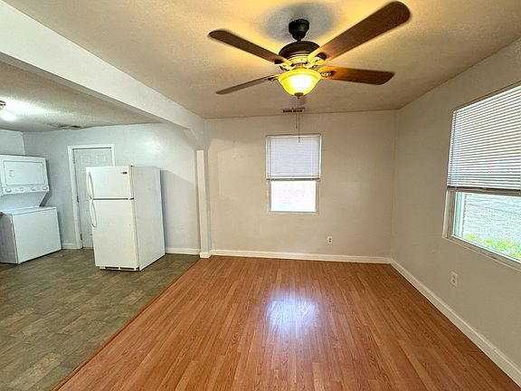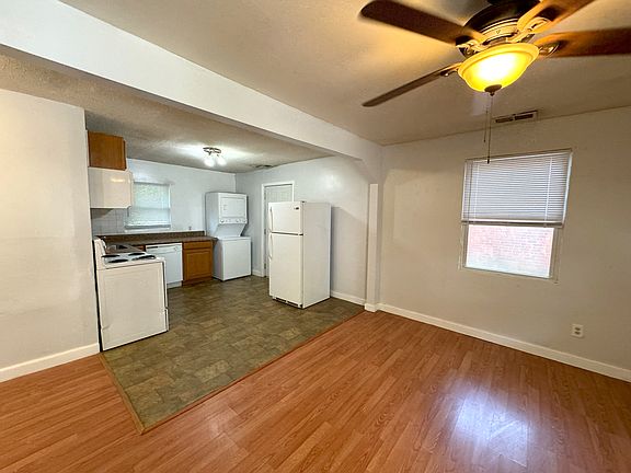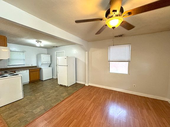 Huge covered front porch! Open living room with ceiling fan. Kitchen with fridge, stove, dishwasher and microwave. Stackable washer/dryer provided as a courtesy. Two spacious bedrooms with closets and overhead lighting. Hall bathroom has a tub/shower combo and vanity for storage. Off street parking. Water, sewer, trash, and lawn care are an additional monthly fee of $50! No pets. No smoking. Available NOW!