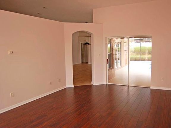 Quiet neighborhood one story home on a cul de sac(court). The back of the house has rear neighbors across a large grassy area, which gives you more privacy while you are relaxing in your private pool/spa which has a fully enclosed screened area. Large covered area which provides a shaded space and plenty of room for table and chairs.