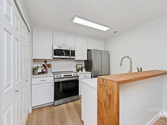 Welcome to your single level urban retreat in the heart of Southeast Boise! This impeccably remodeled condo offers a fusion of modern design & urban convenience. Step inside to discover a stylish open-concept living space where natural light shines through the windows to show off the sleek LVP floors & brand new finishes. Prepare culinary delights in the kitchen with a new Samsung stainless steel appliance package, white shaker cabinets and new countertops. A butcher block waterfall-edge bar truly highlights the space. The tile surrounds in the bathroom are framed with a new vanity & lighting and are flanked by two oversized bedrooms. Outside a private patio provides a serene outdoor oasis shaded with mature trees. Enjoy the convenience of dedicated covered parking & storage, with access to the community pool. Located minutes from downtown Boise, the Greenbelt & BSU, this condo offers unparalleled access to the city's vibrant destinations, while providing a peaceful retreat from the hustle and bustle.