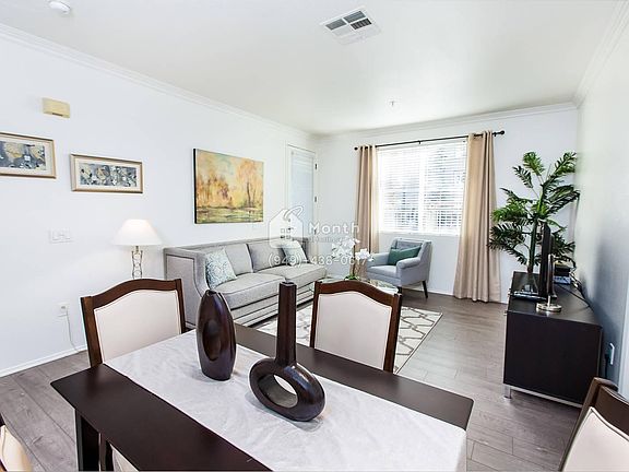 This luxurious 2 bedroom/2 bathroom condominium offers a Stellar Living experience in the heart of Irvine! Beautifully remodeled throughout, features hardwood flooring in the common area, carpet for bedrooms, upgraded kitchen with granite counter tops, energy saving appliances and wood cabinetry. Exquisitely furnished throughout with choice furnitures and designer rugs. Two bedrooms furnished with cozy Queen size beds. Full scale bathroom with matching cabinetry as kitchen. The entire home is bright and cheerful. One assigned indoor parking space with access to elevator completes the convenience list.