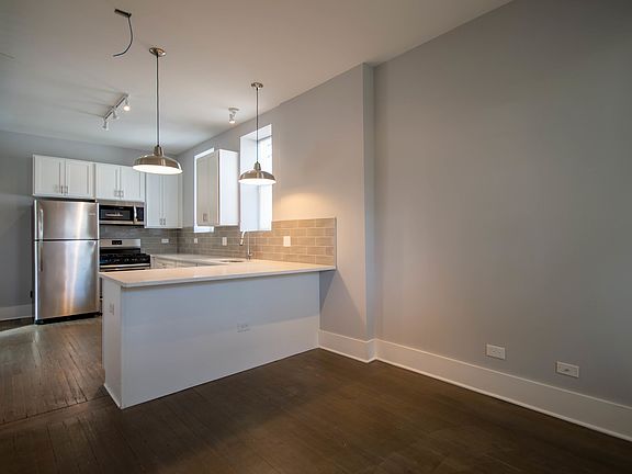 Available 11/1. Come check out this gorgeously renovated 1 bed, 1 bath in the heart of Pilsen! The kitchen features white shaker cabinets, quartz countertops, backsplash, and stainless steel appliances. The bathroom features white subway tile surround and a white shaker vanity with stone countertop. Other features include hardwood flooring throughout, high ceilings, and central heat/ac. Common Laundry in the basement. Located in Pilsen just a short walk from all the shopping, restaurants, and bars on 18th street. Only a few blocks from the 18th street pink line. Steps from Harrison Park where you can enjoy local green space. Several nearby grocery options including Cermak Fresh Market, Aldi, and Costco. $49.50/mo utility fee, which includes Wi-Fi, water, trash and sewage. $40/mo Mandatory Resident Benefit Package includes renters insurance, positive credit reporting for on-time rental payments, identity fraud protection and more. $250 non refundable move-in fee per person. $250 pet fee per pet. One pet max. dog breed restrictions Boxer, Doberman, Pitbull, Rottweiler, Bull Mastiff. Site unseen or video tour applications will not be accepted. Applicants with collections on credit report will not be accepted.