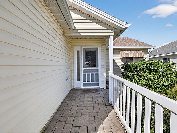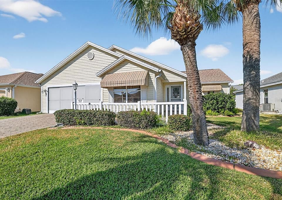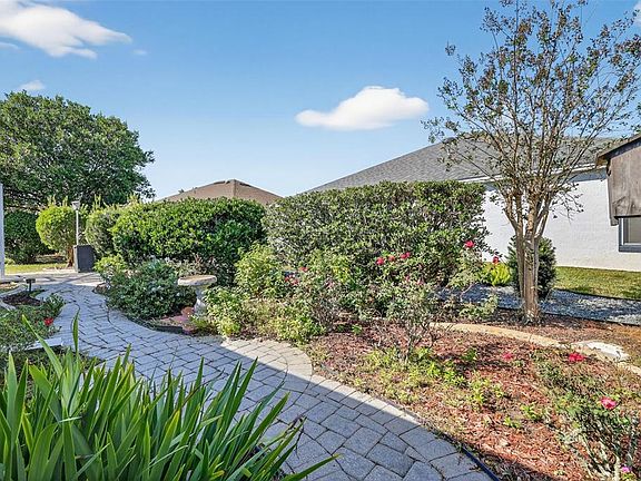 A CHARMING 2/2 THAT LIVES LIKE A STORYBOOK RETREAT, featuring three inviting lanais and a beautiful garden walk framed by lush, private shrubbery. Inside, brand-new vinyl wood flooring runs throughout—no carpet. Perfectly positioned between Spanish Springs and Sumter Landing, with golf cart access to a nearby championship course and three executive courses. Convenient to top-tier shopping and the hospital. Major systems have been updated, including the Roof in 2020, A/C in 2020, and Water Heater in 2009. An exceptional home in a warm, welcoming neighborhood. A MUST SEE!