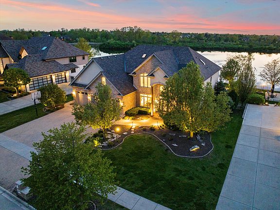 Ultra upgraded and recently renovated home with sleek and sophisticated custom finishes. The perfect blend of modern and contemporary luxury living in an absolutely priceless setting. Resort-style amenities and a fully integrated smart home experience. Situated on a verdant half-acre lot on Gun Club Lake with breathtaking views and priceless sunsets! Recently enhanced with commercial-grade technology and meticulously curated design upgrades that wow at every turn. Beautifully refinished modern hardwood floors and striking black-painted ceiling beams that set the tone for a sophisticated ambiance. An all-new, custom staircase and banister lead to plush, high-end carpeting in the bedrooms and master closet, while every wall, baseboard, and door has been freshly painted for a seamless look. Entertain on a grand scale in the open-concept kitchen, thoughtfully updated with a new backsplash, large stainless-steel sink, Kohler faucet, sleek cabinet hardware, and under-counter wine fridge. The adjacent great room showcases a newly white-washed fireplace, and a custom LED chandelier imported from Ukraine, while a mounted 86-inch TV and color-controllable smart lighting throughout the home elevate every gathering. The fully integrated Sonos system features 60+ flush-mounted speakers and 16+ separately zoned amps-perfect for music, movies, or game-day excitement. Downstairs, discover a FINISHED WALKOUT basement built for entertaining, boasting a custom epoxy bar with a 6-TV array, commercial 3-door beverage fridge, three-sided fireplace, and a custom 500 sq. ft. putting green. A whole-home Unifi Wi-Fi system, commercial-grade security cameras, Nest Protect detectors, four Nest thermostats, and a tankless water heater blend convenience and peace of mind. Outdoors, enjoy the professionally landscaped yard with front and backyard lighting, a saltwater pool, hot tub, built-in bar, and firepit, all designed for an unparalleled staycation vibe. With every upgrade thoughtfully executed-from modern lighting to black roller shades-this home offers a truly one-of-a-kind, resort-like experience in the heart of Mokena. Imagine the parties that you can have here! Close to shopping, dining, expressways, the future Pete's Fresh Market and Crossroads Sportsplex. WELCOME TO LINCOLN-WAY LUXURY! WATCH FULL LENGTH VIDEO! Motivated seller, will look at all offers!!