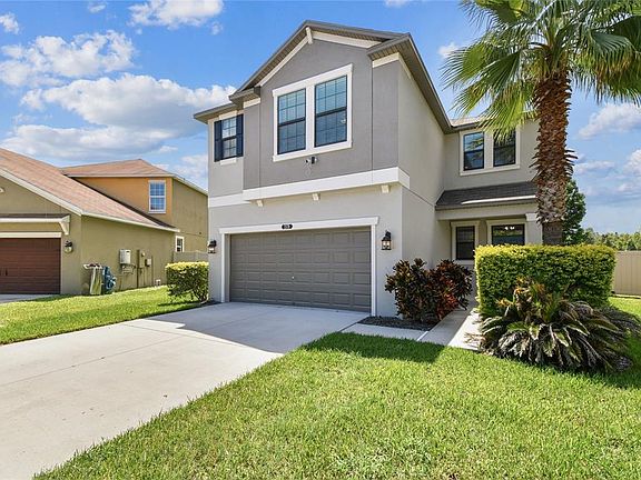 Beautifully Upgraded and Move-In Ready! Freshly painted both inside and out, this stunning two-story home offers 2,775 sq. ft. of thoughtfully designed living space. Featuring 4 spacious bedrooms, 2.5 bathrooms, a main floor home office, an upper-level loft, and a two-car garage—this home is ready to welcome its new owners. Step into the inviting foyer and you’ll immediately notice the upgraded light fixtures and Luxury Vinyl Plank flooring. To the left of the foyer is the double-door entry to your private home office. Down the hall, you’ll find a convenient mudroom with a built-in mail drop station, and a fully upgraded half bath showcasing a new vestibule, new vanity, new faucet, framed mirror, and updated light fixture. The main floor boasts luxury vinyl plank flooring throughout. Continue into the heart of the home where the open-concept layout shines. The fully renovated kitchen is a showstopper—featuring brand new upgraded stainless-steel appliances, including a fridge, gas range, dishwasher, and microwave. You'll love the upgraded kitchen cabinets with crown molding, built-in refrigerator casing, accented with navy cabinets in the island, premium hardware, and granite countertops, all illuminated by custom light fixtures over the island and in the dining area. This stylish kitchen opens seamlessly to the grand room and eat-in area, enhanced by upgraded ceiling fans in the grand room, new led lighting and upgraded window treatments. The numerous large windows providing an abundance of natural lighting and serene views of the pond and conservation. Step outside to the covered and screened lanai, overlooking a spacious fenced backyard, perfect for entertaining or adding your dream backyard oasis. Upstairs, a generous loft offers a flexible space ideal for a second living room, family game nights, or movie marathons. The owner’s suite is privately located at the back of the home, offering a peaceful retreat with stunning conservation views. The ensuite bathroom features a walk-in shower, soaking tub, and dual sinks. From the owner's walk-in closet, you have direct access to an oversized laundry room, complete with GE washer and dryer and plenty of space to customize. The three additional bedrooms all feature oversized or walk-in closets. The upper-level bathroom has also been upgraded with new light fixtures, a new tub, and modern tiled shower walls. Energy-Saving Features: Whole-house water softener and filtration system, Tankless gas water heater, Reclaimed water for irrigation Located in the desirable Connerton community of Verona, this home is steps away from open park spaces and play areas—perfect for family fun or meeting neighbors. Enjoy the resort-style pool and splash park, multiple sports courts (basketball, tennis, volleyball), fitness center, scenic nature trails, and a packed calendar of community events at the clubhouse and outdoor amphitheater. Connerton also offers an on-site elementary school and the new Pinecrest Academy, with a second clubhouse and the Ridge Road extension coming soon. You’ll love the convenient location near shops, dining, and the new Speros Moffitt Cancer Center.