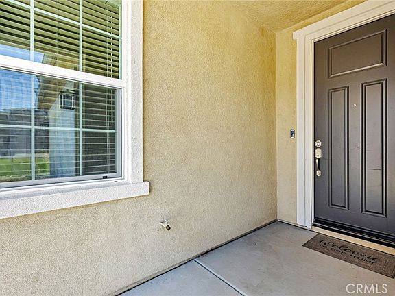 Located at The Desirable Spring Mountain Ranch. A quiet and panoramic neighborhood. This thoughtfully designed one-story open concept home blends modern elegance with functional simplicity. As you step through the front door, you're immediately welcomed into a spacious hallway off the great room where the living, dining, kitchen area flow seamlessly together with sorround sound system. Big window line the back wall, drawing in natural light offering views of the backyard and outdoor living space. The kitchen boasts a good size center island with bar seating, sleek countertops and designer backsplash, upgraded appliances, stained cabinets and pantry. Adjacent, the dning area is subtly defined with modern lights and a space for a generous table, making it ideal for everything from weeknight dinners to holiday feasts. Engineered floors, owned solar, water softener. The sliding doors open to a covered patio, extending the living space outdoors.- ideal for bbqs, morning coffes or evening relaxation. The flex room that can function as a home office, gym or media space. Clean lines, wide sightlines and an effortless flow of space make this home both welcoming and adaptable to modern lifestyles. The well manicured backyard has 3 fruit bearing trees- peach, avocado and persimmon. Near UC Riverside.