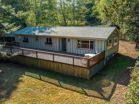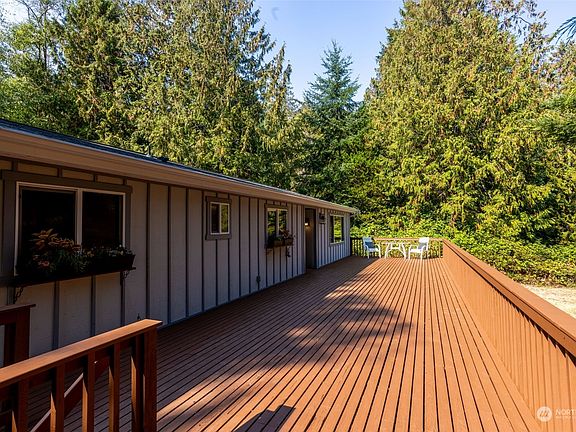 Single level, 3bed/2bath home in President Point. PRIVATE 1+ ACRE LOT! NK Schools. Under 5 miles from Kingston ferry & downtown shopping/dining. Large living room greets you as you step through the front door. Enjoy the spacious kitchen w/ breakfast nook & dining area on either side. Primary suite w/ private bath. 2 additional bedrooms plus 2nd bath with jetted tub. Laundry room w/ back-yard access. Community Beach access just down the street w/ miles of beach waiting for you to roam! Massive front deck is sure to meet your entertaining needs. There's also a covered back porch, the perfect spot to enjoy outdoor dining year round. Home does not allow for traditional financing. Cash, portfolio loan or possible seller financing (with 20% down)