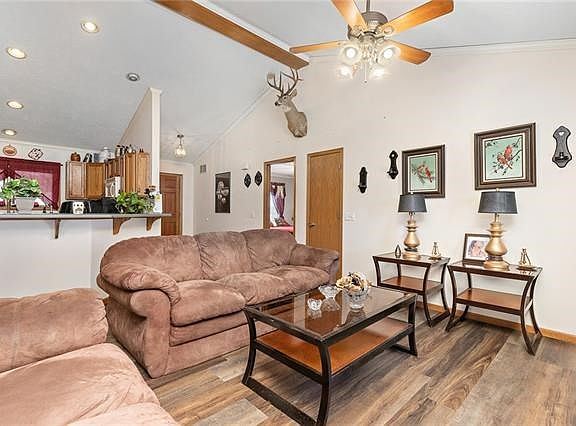 Fabulous 3 bed/2 bath ranch on 3 lots with great space to entertain. Open floor plan w/cathedral ceilings. Kitchen has all appliances, roll-out shelves, pantry and a breakfast bar. Master bedroom has jacuzzi tub & separate walk in shower. Amazing walk in closet. Main floor laundry. Minutes away from Pomona Lake and Trails. Home has two car garage large enough for your boat. Beautiful lot and gorgeous sunset views.
