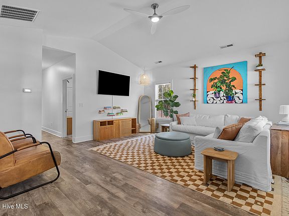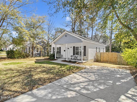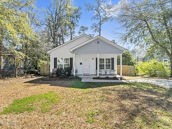 Built in 2020, this stunning single-story, 3-bedroom, 2-bathroom home offers 1,130 sq. ft. of thoughtfully designed space and is bursting with character. Step onto the inviting front porch, complete with a charming porch swing. Inside, the spacious living room boasts vaulted ceilings and abundant natural light, creating an open and airy feel. The kitchen overlooks the dining area and features granite countertops and stainless steel appliances, making it ideal for both everyday cooking and entertaining. The primary suite features trey ceilings, his and hers walk-in closets, and an ensuite bathroom with dual vanities and a walk-in shower. Two additional spacious bedrooms and a second full bathroom provide plenty of room for family, guests, or a home office. Outside, enjoy the large fenced-in backyard, complete with a fire pit area for cozy gatherings and a large storage shed for extra convenience. The home is also equipped with a whole house reverse osmosis system for all your clean water needs. Located just 5 minutes from Historic Downtown Wilmington and 15 minutes to Wrightsville Beach, this home has it all!