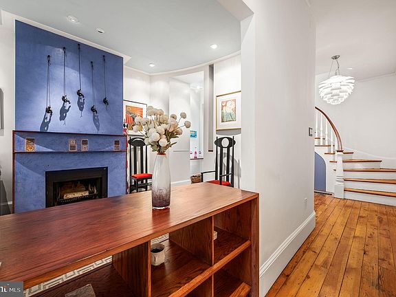 Charming on Cherry! This 4 bedroom, 2.5 bath home with parking and 3 outdoor spaces, is located in the vibrant Logan Square neighborhood, conveniently positioned between the Art Museum and Rittenhouse Square. This stunner—built in 1851—combines classic charm with modern updates, offering a blend of historical character and contemporary living. Step into the light-filled vestibule and feel the warmth of the original, random-width pine flooring. The spacious living room boasts high ceilings, a striking fireplace with a Venetian plaster finish, a hidden dry bar perfect for entertaining, and custom built ins. The home was extended to include a hidden gem of the outside alley coming in, with a powder room and two charming vignettes with stone walls and skylights that flood the space with natural light. The separate dining room showcases masterful craftsmanship with custom woodwork, including shelving, wine racks, and additional storage. A few steps down, you’ll find a Chef's kitchen with radiant floors, equipped with a Wolf 48-inch dual fuel range. The range includes one and a half ovens, 4 burners, an infrared charbroiler, and an infrared griddle. . The oversized stainless steel farm sink offers a lovely view of the picturesque bricked patio, complete with a trellis, which discreetly conceals an outdoor dining area, a single pink dogwood tree, and the 1-car parking area off Appletree Street. Take the elegant original central winding staircase to the second floor, where you'll find a spacious rear bedroom with its own private deck. This level also includes a hall laundry room with a hidden ironing board, a laundry chute, and a shared hall bath featuring dual sinks, medicine cabinets, and ample storage. The front bedroom offers fantastic closet space and built-in shelving. The top floor features a rear bedroom with an exposed brick accent wall and a deck showcasing impressive city views. The front bedroom, accessed through original double glass doors, leads to the Primary Bedroom. This room boasts vaulted ceilings with original beams, an accent brick wall, and a full wall of California Closets. The renovated en-suite bath includes dual sinks and an oversized tiled shower with dual shower heads, radiant floors and a skylight. The space also features a mini-split for efficient air conditioning and bonus hidden storage accessible through a pull down ladder to a carpeted attic. Not to be missed in the lower level, is the partially finished basement with extra fridge and sink, as well as a cedar closet for seasonal clothing! This property is steps away from Coxe Park, Trader Joe's, Giant, Wholefoods, The Franklin Institute, Rittenhouse Square, The Art Museum, and the Swann Memorial Fountain. It also offers close and easy access to 30th Street Station and both the Vine Street and Schuylkill Expressways.