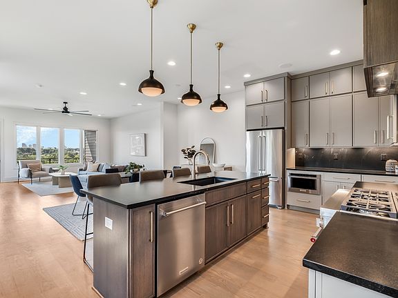 Custom riverfront homeLarge islandWalk-in pantryFour private balconiesPrivate fenced backyardSpa-like bathOpen-concept layout