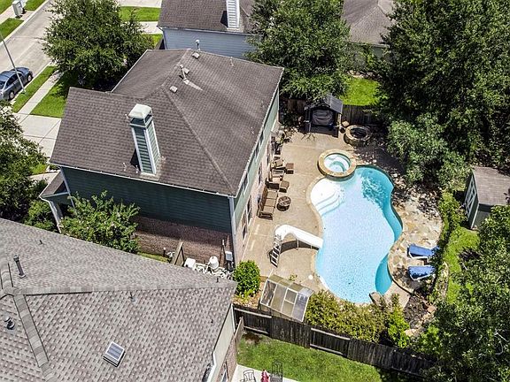 Stunning 2-story family home with a BACKYARD OASIS. Gorgeous pool/spa, slide, diving rock, fire pit, flagstone decking. Nicely landscaped with plenty of grass area and trees. Sprinkler system front and rear. The interior is updated with recent paint & wood floors, the kitchen has granite countertops, stainless appliances, recently refinished cabinets, tile floors, and tile glass backsplash. Wait till you see the remodeled master bath, there's a soaker tub with a message sprayer, seamless shower with rain head and body sprayer. Granite countertops, plumbing fixtures, lighting, and a European porcelain sink. Recent AC, furnace and water heater. Zoned to the new Grand Oaks High School, walking distance to Broadway Elementary. Close to the subdivision pool, park, and clubhouse. There's a very cool sports park with basketball hoops and tennis courts. Location can't be better for restaurants, shopping and only 15-minutes from the Exxon/Mobil Campus. The Grand Parkway (99) only blocks away..