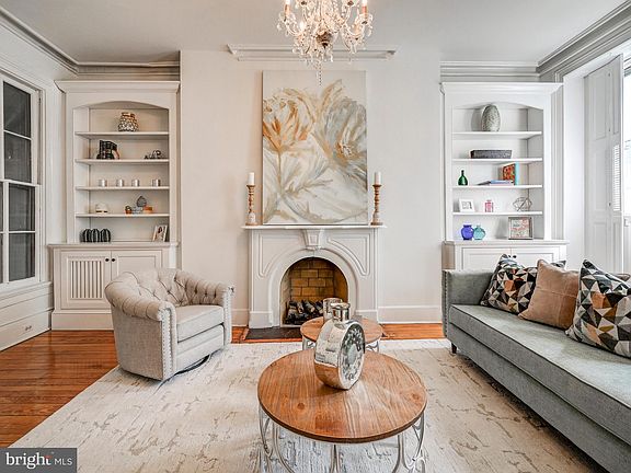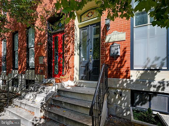 Classic and grand Butchers Hill home in an ideal location one block from Patterson Park, one block from Charmed Kitchen, and across the street from the upcoming new restaurant, Marta (formerly Salt). The home is 18.5 feet wide and large (just under 2,900 square feet above grade) and has retained many historical details such has original pine floors, custom moldings and medallions, and a stunning curved staircase. The home has a large, modern eat-in gourmet kitchen with island, stainless appliances, plus a separate formal dining room. The kitchen opens to a large outdoor space landscaped with pavers and built-in flowerbeds. Main level powder room and laundry round out the main floor. Upstairs. there are 5 rooms, plus three full bathrooms. The primary bedroom on the second floor has a large walk-in closet and a renovated en suite primary bath with marble tile and shower with dual shower heads and glass doors. The home layout provides several options for creating a home office, second primary suite or family room/den. There is presently no roof deck, but there is a door to the roof and the views on this block are spectacular. This home is a short walk to the John Hopkins Medical campus (and the neighborhood has several shuttle stops) and many area attractions, restaurants and the waterfront. Seller will provide one year of leased parking in lot just above Lombard Street at Duncan Street with a ratified contract.