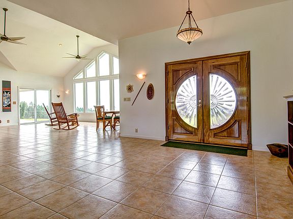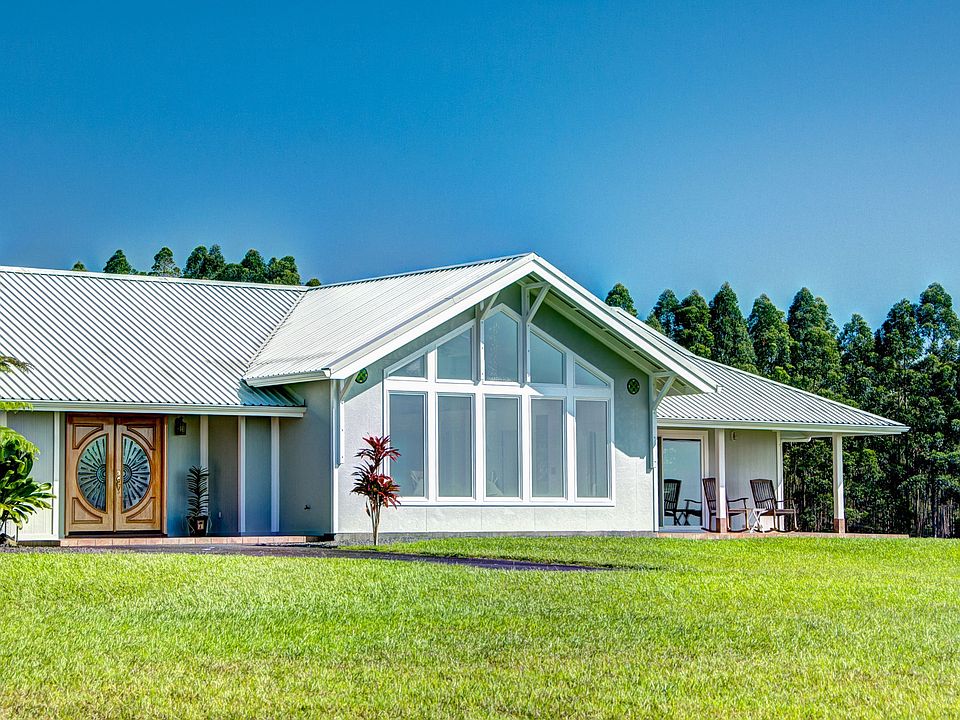 This beautiful Kaiwiki Country Estate will be a joy to call your home! Located on 6.29 acres, the home boasts exquisite views of Hilo bay, the ocean and coastline. The single story home is situated on the high ground above an expansive lawn providing tremendous privacy yet still a short drive to Hilo town. Recently painted Hardi-board exterior.The great room faces east where you can look through a wall of windows toward the ocean. Open floor plan with 14' vaulted ceilings throughout the living/dining/kitchen area. The design makes entertaining a pleasure. Sophisticated black granite counter tops in the kitchen including a huge cook top island with wet bar and built-in butcher block counter. Bar stools included. Pull out storage drawers and three large pantries provide tons of storage. The living area has a gas fireplace for those chilly Kaiwiki nights at 1300 foot elevation. Automatic blower in fireplace heats the great room and large ceiling fans distribute the air, warm or cool. Master suite is separated from the two secondary bedrooms. Fantastic tiled bath and walk through closet. Lovely covered lanai off the master suite, facing east and the morning sunrise. Two additional bedrooms and bath, one with built in Murphy bed. Attached oversize garage has half bath and lots of workshop space. Craftsman riding mower is included. Meticulously maintained yard and plantings. The property is fully fenced and the entry gate has a remote control. Plantings include bamboo, fruit trees and ornamentals. Sixteen species of clumping bamboo all nearing or at harvest stage. Construction, furniture and musical instrument grade bamboos. Producing fruit trees include orange, lime, tangerine, breadfruit, papaya, seville orange, banana and lilikoi. Avocado, lychee, starfruit and chestnut will produce soon. Fantastic location, gorgeous views and an impeccably maintained home on lovely acreage in Hilo. Welcome Home!