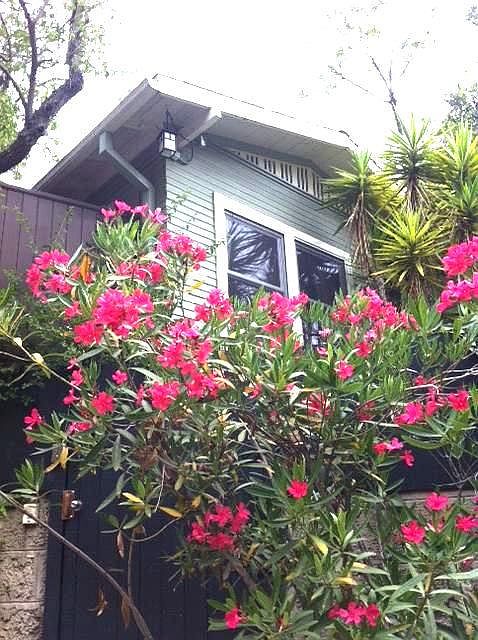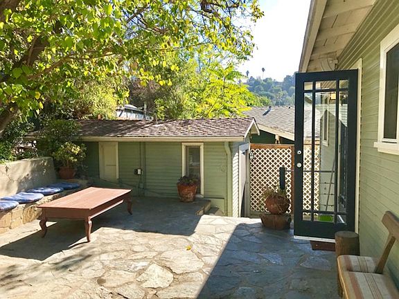 SHORT /LONG TERM, LIVE/WORK AT THIS ENCHANTING, LIGHT FILLED 2BD/1BA HOUSE PLUS TWO DETACHED OFFICE/ART STUDIOS WITH BATHROOMS. WALK TO BOTH SUNSET JUNCTION AND DOWNTOWN SILVERLAKE (TRADER JOE'S).INDOOR/OUTDOOR LIVING, FEATURING LARGE WINDOWS AND FRENCH DOORS THROUGHOUT WITH VIEWS OF SILVER LAKE HILLS AND A HILLSIDE MEADOW. WALK TO ALL. Enjoy secluded hillside vibe in upscale Franklin Hills in Los Feliz with walkability to Silver Lake's best shopping districts (walk to both Sunset Junction and Gelsons/Trader Joe's). A private and zen garden setting surrounds a 2 bedroom California Craftsman house/1 bath and a detached office or art studio/1 bath and a detached office studio, rec room/.5 bath. Relax or dine on one of the three patios with views of the Silver Lake Hills and a hillside meadow. Or, explore our artsy and chic neighborhood with a short walk to Silver Lake's Hyperion shops or Sunset Junction. Detached office/art/rec room studio with full bath, pitched ceiling, picture-window canyon and patio views, step-out access to shaded stone patio. Detached office/art/rec room studio with half bath, sliding-door access to two patios. long term/unfurnished ($5495/mo) or short term/furnished ($5995/mo) lease available Tenant pays all utilities.