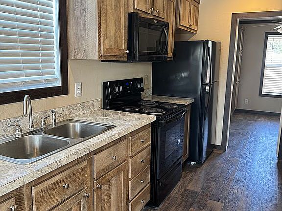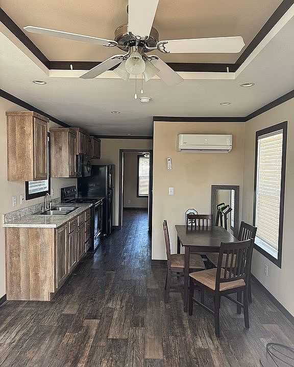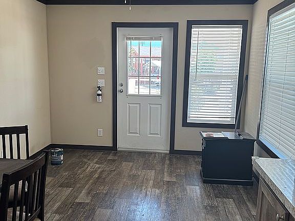 The home is set up at Centennial Village a 55+ community. It is 399 sq ft of cuteness. The layout allows versatility when it comes to furniture placement. It has energy efficient windows, mini splits in the living room and bedroom area, plus a full size shower. There is also a space for a stackable washer and dryer.