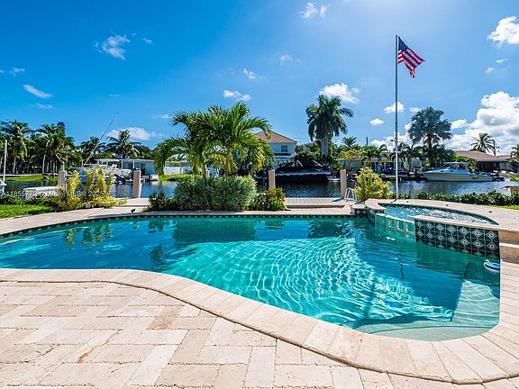 Beautiful home on the water, with 3 bedrooms and 2 bathrooms. Huge exterior covered Patio with grill, dining table, sofa, and lounge beds. Private heated pool and spa, and Dock Space (70' waterfront) with a Tranquil view of the water and landscaping. Located in a quiet and safe neighborhood that is within walking distance to the beach, mall, grocery stores, and plenty of restaurants and cafes. The home comes equipped with everything you'll need to feel at home and comfortable. Short-Term Rental Available.