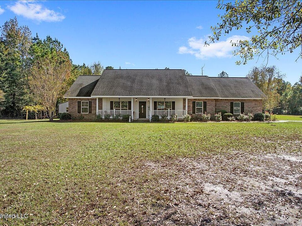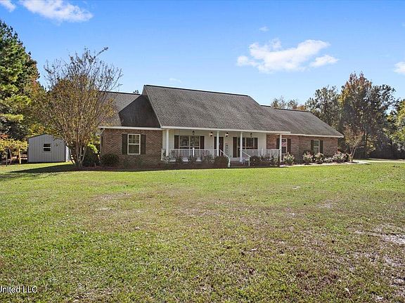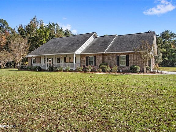 Spacious and well kept 3BR/2BA home offering 2,004 sq. ft. of living space situated on 3.1 acres of cleared, level land right in the heart of Leakesville. This property offers the best of both worlds, quiet country living with the convenience of being close to town. Located in a peaceful, established neighborhood, this home provides an easy commute to Hattiesburg, Lucedale, and Mobile. Inside, the home features a large living area with high ceilings, perfect for family gatherings or entertaining. The kitchen is a true highlight, featuring custom cabinets, granite countertops, garbage disposal, a large center island, breakfast area, coffee bar, and a raised bar with plenty of room for seating. The primary suite is spacious and comfortable, offering a large walk-in closet and a private bath with a double vanity, marble countertops, soaking tub, and a separate shower. The split floor plan provides privacy, with two additional guest bedrooms, each with walk-in closets, and a guest bath featuring a walk-in shower. The mudroom/laundry room is designed for convenience with its own sink and folding table. Other interior features include a floored attic for additional storage, an abundance of storage closets, ADT security system, and high quality finishes throughout. Outside, enjoy a large front porch perfect for relaxing and a screened rear porch ideal for enjoying quiet evenings. The property also includes a two car garage and a powered workshop with an attached covered area for lawn mower or equipment storage. The yard is beautifully landscaped and features established blueberry bushes. With over three acres of open, level ground, there's plenty of space for gardening, play, or future projects. This beautiful property offers room to grow and enjoy the outdoors while being just seconds from town conveniences. A rare find in Leakesville: peaceful setting, spacious home, and well maintained throughout.