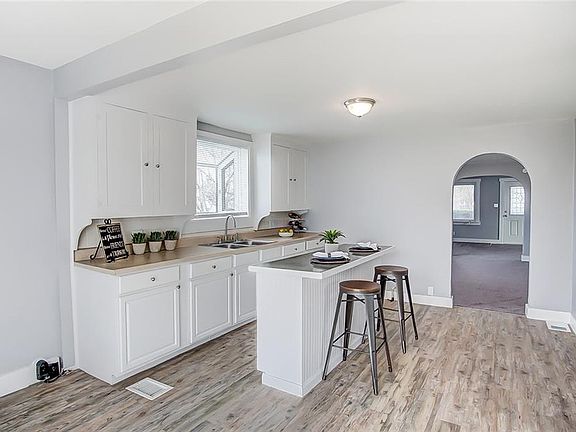 Investment Opportunity with leased tenant. Please review agent remarks. Adorably renovated Cape Cod. Perfect starter home. remodeled kitchen and bath. New flooring though out the home. Freshly painted. Newly constructed wooden deck off the rear of the home. This home also has a partial basement and a large 2.5 car oversized garage so storage will not be a problem
