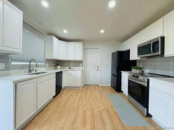 Open house: Sat. May 10, 2025 at 1-3 PM. Welcome to this beautifully updated 4-bedroom, 2-bath home backing to West Toll Gate Creek, with serene open space and scenic walking/biking trails just beyond your back gate, connecting to Horseshoe Park & Cherry Creek State Park. Within short commute to I-225, shops, restaurants, Anschutz University of Colorado Hospital and Campus, and Buckley Air Force Base, this home offers the perfect blend of comfort and convenience. Step inside to discover a fully renovated kitchen featuring brand-new quartz countertops, new elegant light-gray tile backsplash, freshly painted cabinets, new recessed lighting, and a sleek Stainless-Steel sink and faucet. The kitchen comes fully equipped with Stainless-Steel stove/oven and microwave. Upstairs, you’ll find three spacious bedrooms and a full bathroom. Two of the bedrooms offer views of the open space and trail along West Toll Gate Creek. The lower level includes the fourth bedroom, another full bath, and a generous living room with new tiling at mini bar & fridge—perfect for guests or entertaining. Laminate flooring runs throughout the kitchen, living room, and lower level. Both bathrooms feature tile flooring and stylish backsplash accents. Outside, enjoy a newly fenced backyard complete with a new gate, covered patio, and a playset—ideal for privacy, outdoor fun and entertaining. An oversized two-car attached garage and included appliances make this home truly move-in ready.