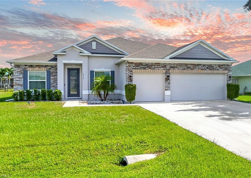 Move-In Ready | Assumable FHA LOAN AT 2.5% | CITY assessment fully paid. make this home one of the strongest values in SW Cape Coral. Located minutes from Publix, schools, dining, parks, and shopping—with quick access to Veterans Parkway—this property delivers convenience and long-term peace of mind. The exterior features professional landscaping and a custom brick-stone entryway that elevates the home’s curb appeal. Inside, the home offers tall ceilings and doors, tray ceiling accents, and durable wood-look tile flooring throughout. The open-concept layout centers around a well-designed kitchen with 48" soft-close shaker cabinets, granite countertops, an oversized granite island, stainless steel Gateway appliances, a side-by-side refrigerator, recessed lighting, and a double-door pantry. A formal dining room accommodates large gatherings, while the den provides flexible space for an office or media room. The oversized primary suite includes two walk-in closets and a bathroom with granite dual vanities and a walk-in tile shower with glass enclosure. Three additional bedrooms and two upgraded full bathrooms offer comfortable space for family and guests. The southern-exposure backyard features a spacious covered patio with all-day sun, ideal for outdoor living or adding a future pool. Additional upgrades include impact windows and doors, upgraded baseboards and fixtures, faux-wood blinds, and an oversized laundry room with LG washer and dryer. With its prime location, thoughtful layout, durable upgrades, and the advantage of a 2.5% assumable FHA loan, this property stands out as an exceptional opportunity in today’s market.