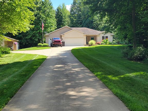 This meticulously maintained property at 2118 Sunny Pine Dr offers the perfect blend of peaceful living and modern convenience, situated just 20 minutes from Grand Rapids and a quick 5-minute drive to Highway 131. Set on a gorgeous 2.33-acre wooded lot, this 3-bedroom, 2.5-bathroom home showcases quality craftsmanship throughout. Step into the welcoming entry that opens to a stunning living room featuring soaring cathedral ceilings. The entire main level has been refreshed with new flooring, while the main bathroom impresses with its new tile floor and custom walk-in tiled shower.Outdoor enthusiasts will appreciate the thoughtfully landscaped yard, complete with an inground sprinkler system that keeps maintenance simple. The spacious back deck, equipped with a retractable awning, provides the perfect spot for outdoor entertaining or peaceful morning coffee. The property includes both a three-stall attached garage and an impressive insulated & heated 40' x 60' pole building. The pole building, with its 200-amp service and 240-volt, offers endless possibilities for workshops, storage, or your favorite hobbies.Home comes with full-home backup generator for peace of mind. This property strikes the perfect balance between countryside serenity and modern convenience. Don't miss the opportunity to make this exceptional home yours. Schedule your showing today.