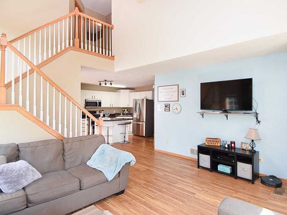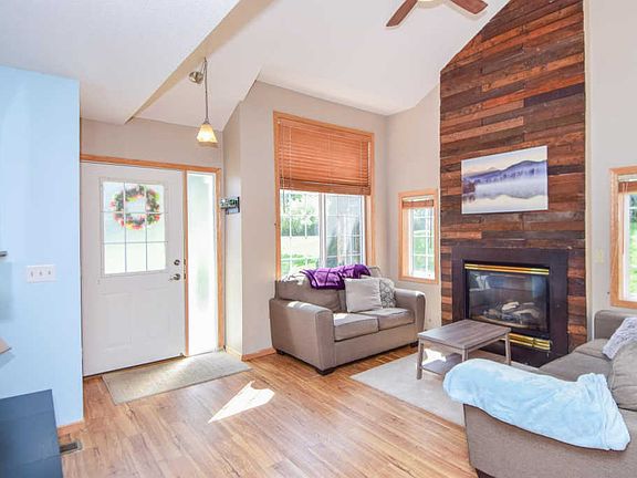 End Unit! Roof & siding new in 2018. Natural sunlight thru out w/south-facing entrance.Trees boarder the west side creating seclusion while enjoying your patio. 2 story living rm w/gas fireplace & beautiful wood backdrop.Kitchen offers all new stainless steel appliances. (you will love that huge fridge!) Patio door from the kitchen/dining is perfect for grilling. Walk in closet on main floor for pantry, winter gear, or storage. The 1/2 bath is conveniently located near the kitchen & door from garage. Huge master bedroom is on the 2nd level w/a large walk in closet. Full upper level bath has separate shower & tub with laundry near by in hallway. 2nd bedrm plus game room are on upper level too. Need 3 bedrooms? Game room has ample size - just no closet. New furnace, AC, water heater, & garage opener just for you! Not available to close until November 30th .