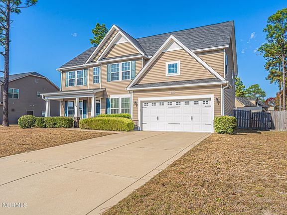 **$5,000 credit offered at closing!** Welcome to a seamless blend of modern luxury and charm nestled in the tranquil neighborhood of Valley End. Enter to the main living areas where you are captivated by the formal dining with coffered ceilings and wainscoting. The study with sliding glass door is perfect for a home office or use-as-you-choose space. Continue to the open & spacious living room with abundant natural lighting and a cozy gas fireplace. The heart of the home features a well-appointed kitchen equipped with white & bright cabinets, tiled backsplash, granite counters, stainless steel appliances to include a gas range, and island with seating. Retire to the second floor to find the spacious owner's suite featuring an ensuite with dual sinks, walk-in shower, soaking tub, and sizable walk-in closet. The additional 3 bedrooms, full bath, laundry and rec/bonus room round out the upper living. Take advantage of the privacy fenced back yard featuring a shed with plentiful additional storage, screened patio, and additional open patio area with a fire pit! The attached, 3-car tandem garage is the icing on top of the functionality that his home offers. With convenience to Hope Mills and Fayetteville shops, dining, parks, and more, you won't want to wait to make this house your home!
